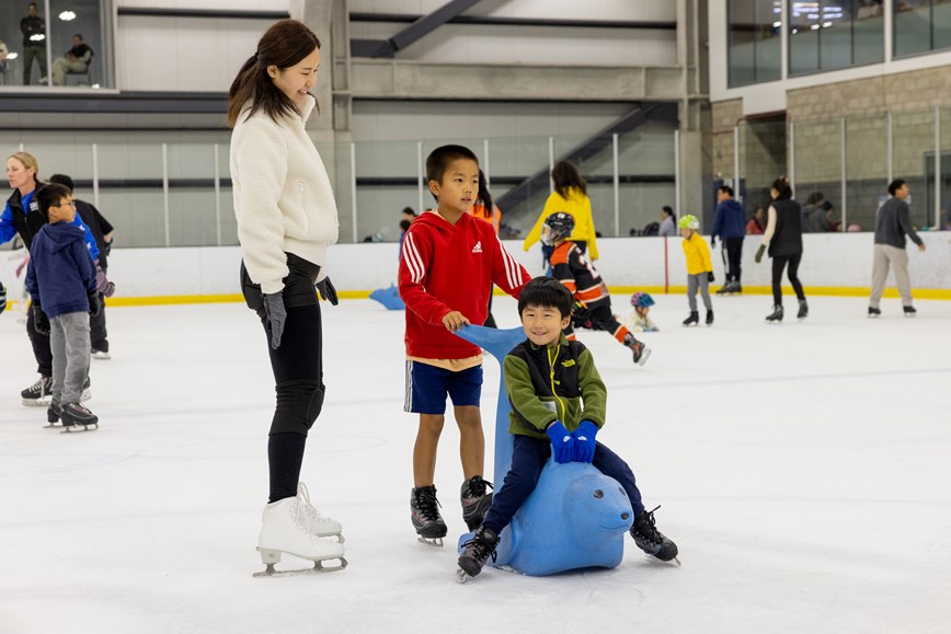 Guests of all ages enjoy skating at Yorba Linda ICE during our daily public ice skating sessions on our rink. We offer professionally maintained ice hockey and figure skates available to rent for your skating pleasure. We also offer skate mates for new skaters or skaters that may need a little extra assistance on the rink.